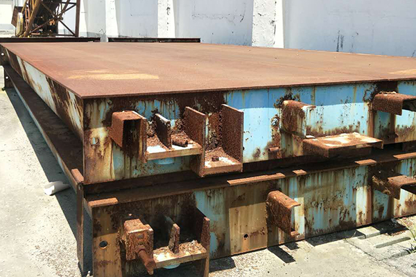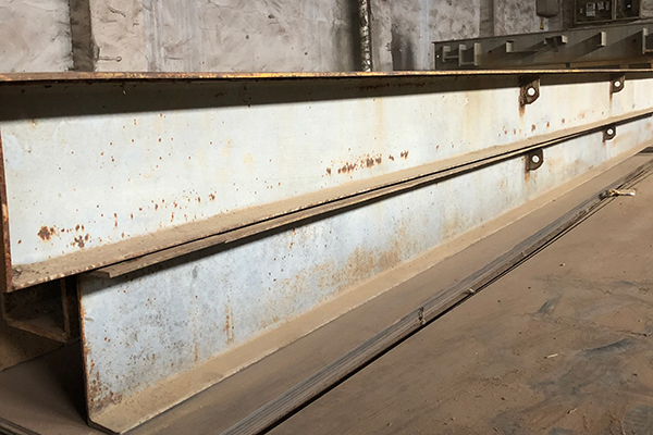 板材加工前軋平,然后進行表面整體拋丸,清理等級達到國際通用的Sa2.5級,再進行初噴底漆預處理,運至機加工現場,通過大型折彎機折成U型鋼,上平臺進行組焊,秤體組焊完成后,再進行防銹防腐